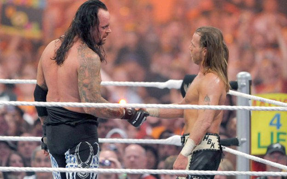 Taker was about to do his signature rest in peace while waiting for him to get up but slowly stopped. He respected Shawn and almost pitied his situation. Shawn drags himself to his feet and slaps Taker, bringing out that ego one last time and essentially asking Undertaker to end it.